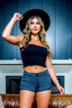 Model Measurements (in): Wearing Size S, height 5'8, bust 34 C, waist 25, hips 38.5