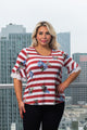 Plus Size 3/4 Sleeve Round Neck Top with Cut Out Detail and Vented Tie Front in Red (FK181312W)
