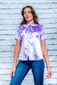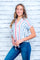 Multi Color Striped Button Down Top with Tied Waist and Short Sleeves with Rolled Cuffs in White* (HTN1653)